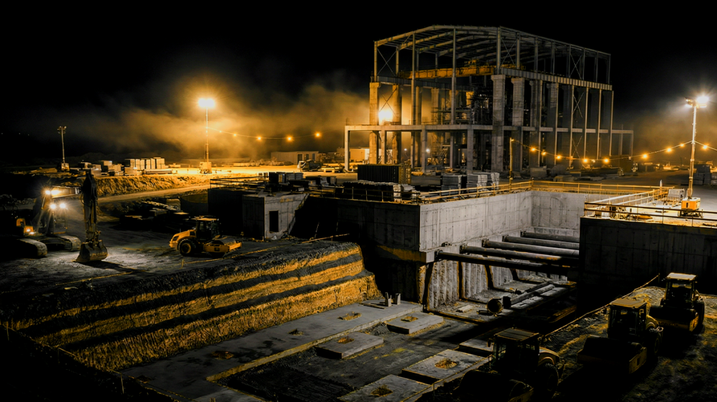 Geotechnical, civil, and building works supporting power generation infrastructure.